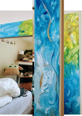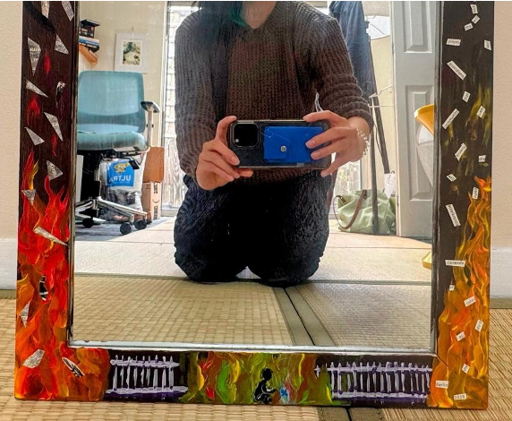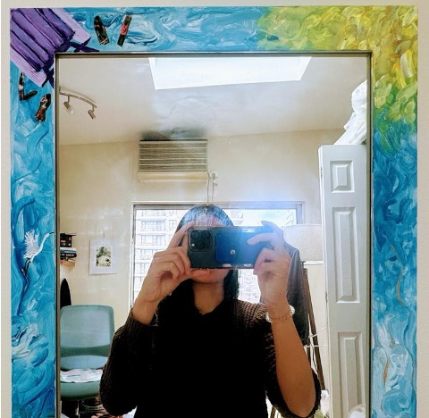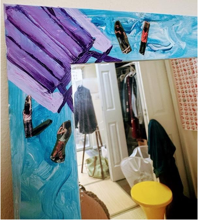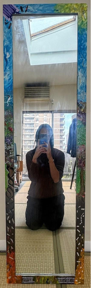Mixed media—acrylic and paper on a plastic mirror