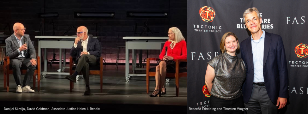 FASPE has been a thought-partner to the artistic team throughout the development of Here There Are Blueberries, facilitating access to European institutions and archives, providing historical context, and curating conversations between audiences, scholars and ethicists. In 2023, Moisés Kaufman and Amanda Gronich received the FASPE Award for Ethical Leadership in recognition of their commitment to exploring the line between complacency, complicity, and culpability through their art.