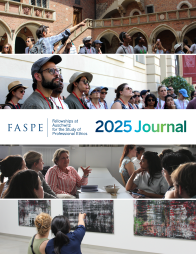 FASPE publishes an annual journal showcasing work by its current and previous fellows. Articles for the FASPE Journal are selected by FASPE faculty and staff from the papers that current fellows write, upon returning from Europe, on a contemporary ethical issue in their professions. Each year, the Journal also includes several papers by previous fellows.