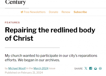 The article on reparations appeared a the March cover story for Christian Century, the…