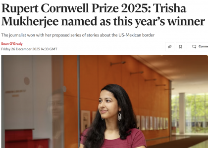 Trisha Mukherjee (FASPE Journalism 2024) wins the 2025 Rupert Cornwell Prize